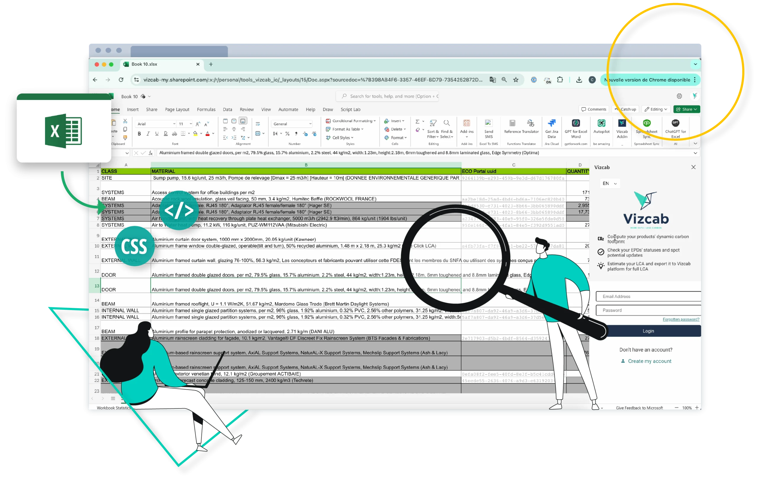 Notre Add-In est la solution la plus rapide et la plus simple pour évaluer l’impact carbone de vos matériaux de construction et de vos projets.