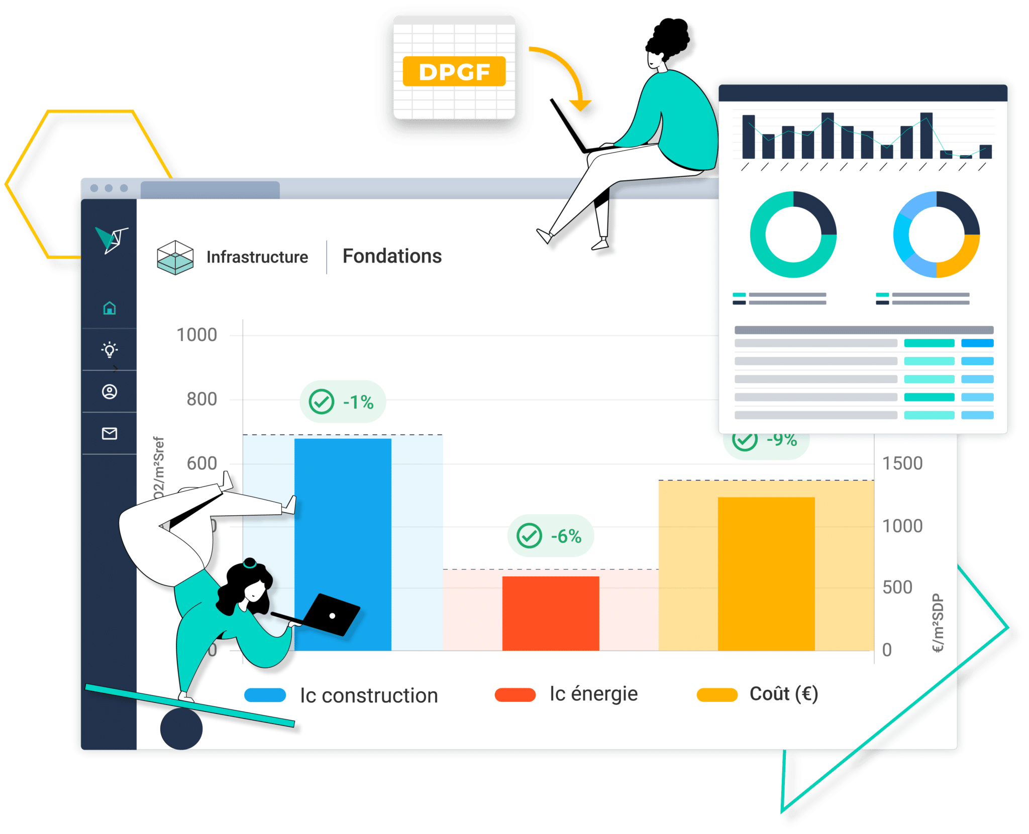 Optimisez le coût de construction. Validez la qualité de vos projets de construction en centralisant les informations carbone de vos partenaires pour prioriser vos actions sur l’ensemble des jalons : études, ACV, et préparation aux contrôles techniques.